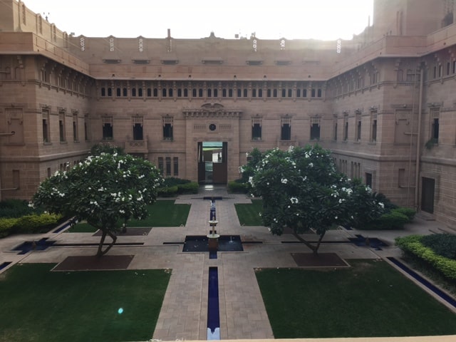 It was just us and the great outdoors. Returning to the Taj Umaid Bhawan, we were greeted again by the beautiful grounds, and that very comfortable peacock head bed.